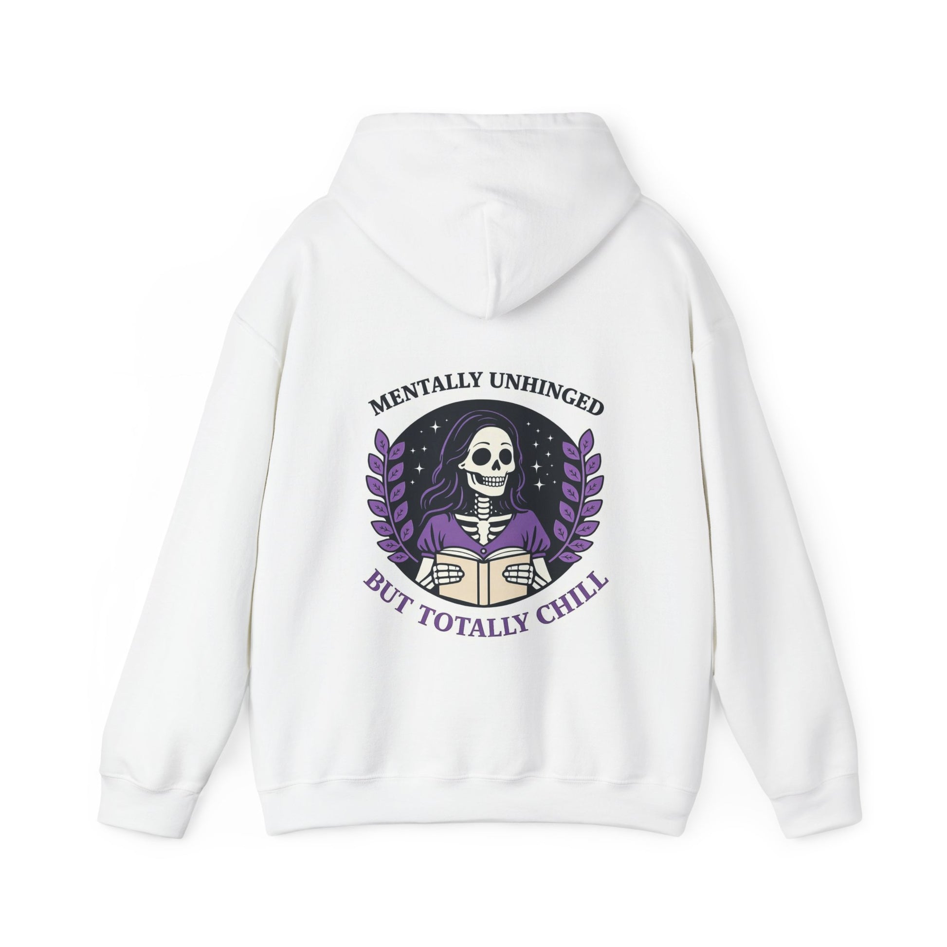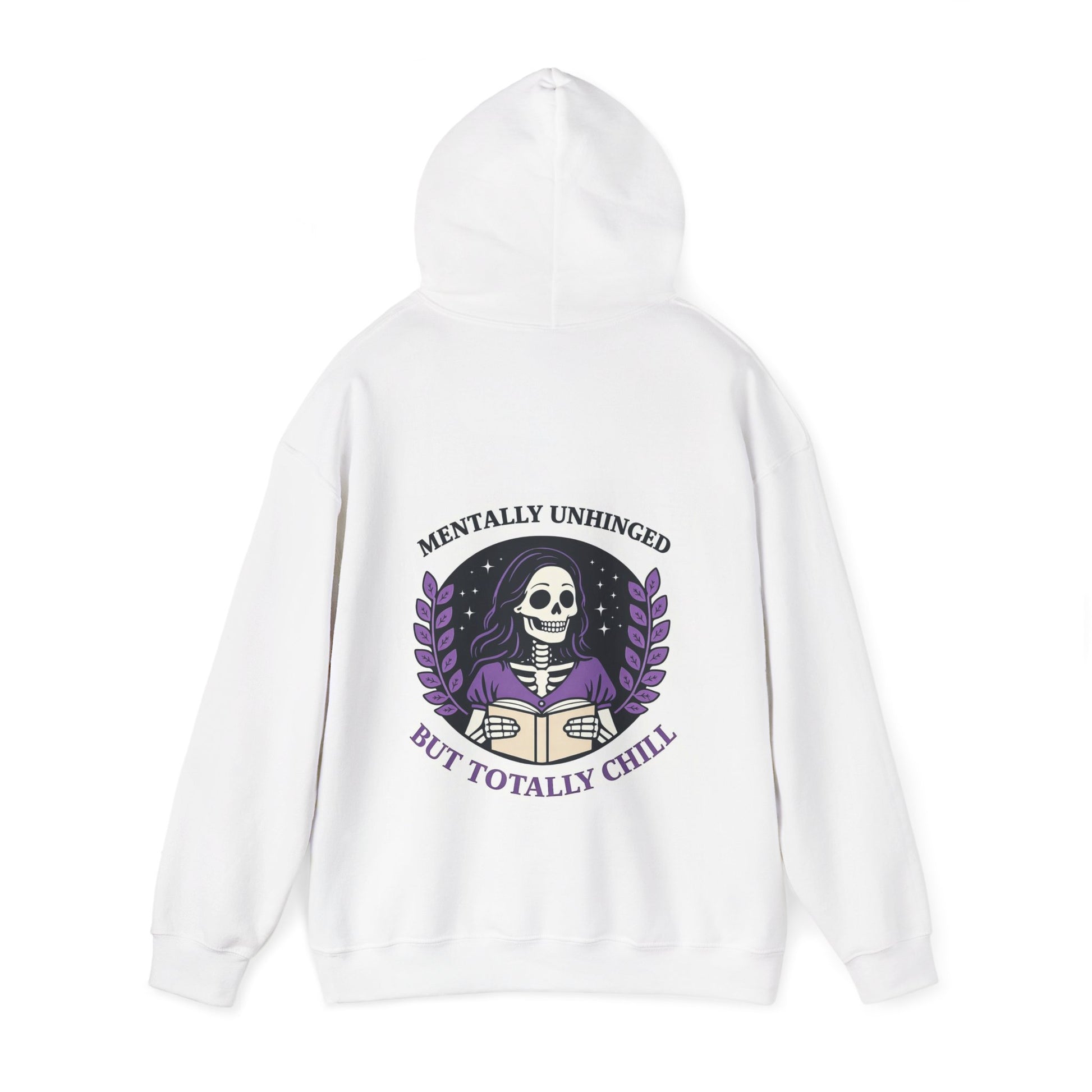 Skeleton Book Lover Hoodie — "Mentally Unhinged but Totally Chill"